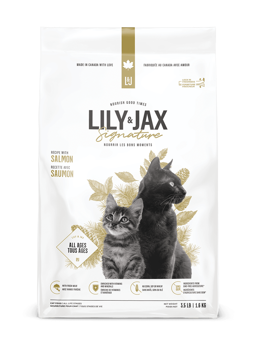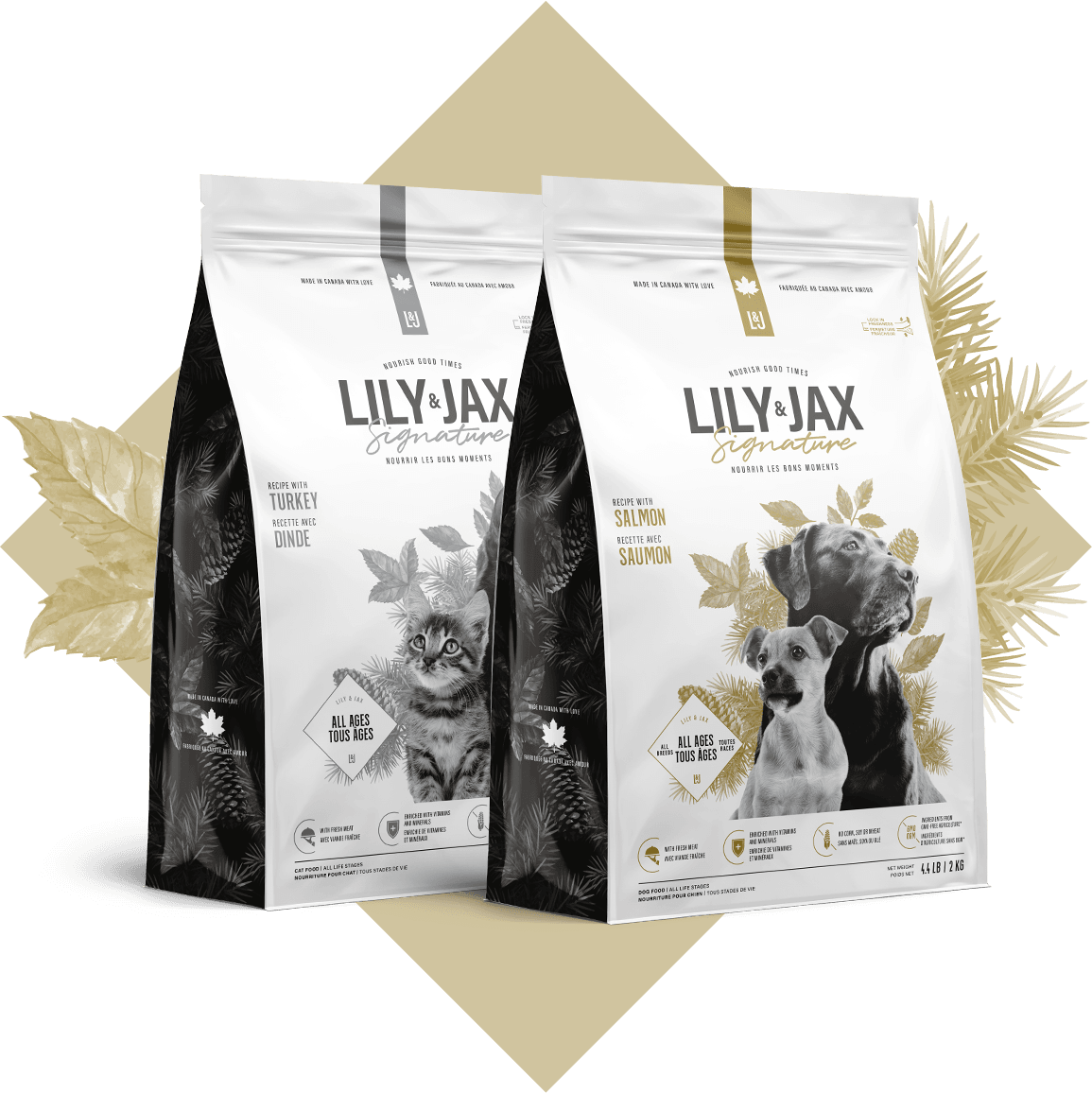 Notre gamme Lily & Jax Signature se distingue par des recettes savoureuses dont la richesse nutritive permet l’alimentation des chats et chiens de tous âges. Complets et équilibrés, ces produits prennent soin de vos compagnons à quatre pattes tout en simplicité!